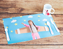 Este kit personalizado para meriendas es perfecto para que tu hijo o hija lo lleve al cole y pueda comer con su propio menaje personalizado. Además, seguro que le viene bien para los días de excursión. El kit incluye todo lo necesario para que tu niño coma de todo y saludable: una taza de plástico, unos cubiertos también de plástico y un mantel individual para que no se manche nada. ¡Todo ello personalizado con foto y texto! La taza y los cubiertos de plástico son muy cómodos para los más pequeños, porque no romperán nada y podrán comer con total seguridad.