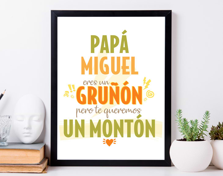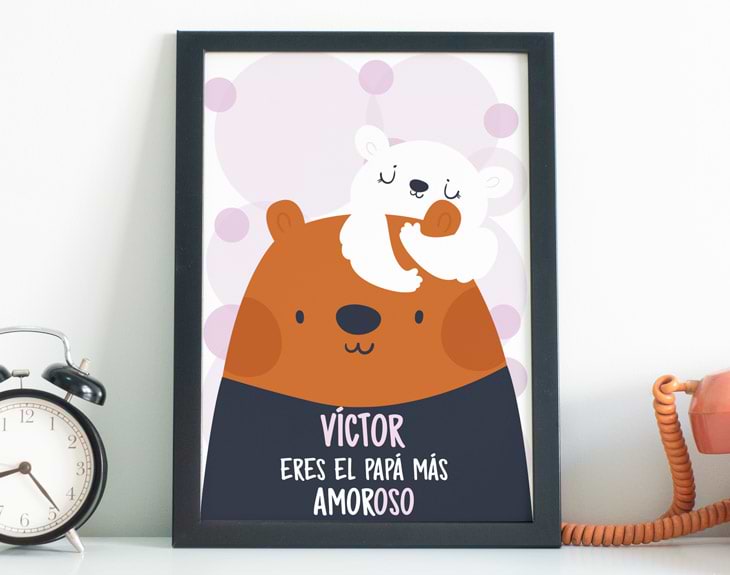 Ser padre es, sin lugar a dudas, una de las experiencias más bonitas que hay. Por eso, si quieres sorprender a ese amigo que acaba de tener un hijo, tenemos el regalo perfecto. Se trata de nuestra lámina personalizada con diseño "Manos de padre y bebé", es ideal. ¡Seguro que le llega al corazoncito porque es adorable! El Día del Padre, un cumpleaños, una amigo invisible o cualquier ocasión especial es perfecta para regalar esta lámina al mejor papá del mundo. Es ideal para darle un toque más personal y tierno a su cuarto. Cada vez que lo vea no podrá evitar sonreír porque se acordará de lo mucho que lo quieren sus seres queridos. Lo mejor que tiene esta lámina es que es personalizable. Podrás escribir los nombres del padre y su hijo o la fecha que tú quieras. Para personalizar esta lámina, el primer paso es añadir el producto al carrito y entrar al área de personalización. Pronto estará perfecto y listo para regalar. ¡Será un original regalo para padres! Importante: Si escoges la opción "versión digital" te enviaremos el diseño por mail en alta resolución. De esta manera, tendrá la calidad necesaria para que puedas imprimirla en cualquier formato. En el formulario de entrega tendrás que seleccionar la opción "Recibir por Email para ahorrar los gastos de envío". Importante: El color del marco puede variar según stock.