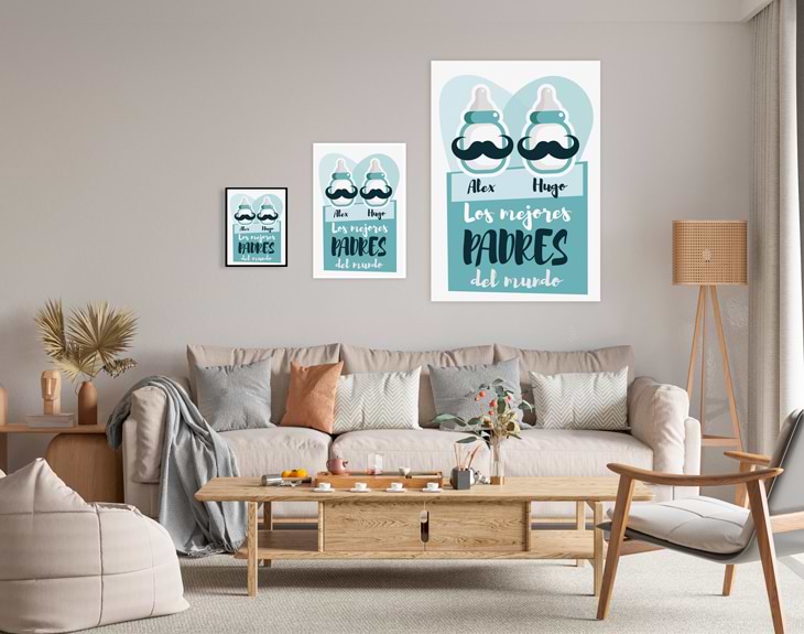Todos sabemos lo dificilísimo que es cuidar a un bebé. Tienes que estar levantándote continuamente, dándole de comer, cambiándole los pañales, consolándole para que deje de llorar en algún momento de la noche... en definitiva, no es una tarea fácil. Por eso, ¿te imaginas cómo debe ser el tener que cuidar y criar a más de uno? Debe ser una locura. Creemos que esos valientes papás merecen un regalo, un agradecimiento enorme por todo el trabajazo que han realizado a lo largo de los años. Por eso, ¿qué mejor que una lámina personalizada como esta? A cualquier padre le encantaría ver todo su sudor recompensado, con un detalle de lo más emocionante. Este diseño es muy cuqui para todos esos padres que han luchado contra el sueño y el agotamiento para atender y vigilar a sus pequeños hijos. Esta lámina la puedes conseguir con marco y por separado... ¡puedes elegir la opción que prefieras! No se nos ocurre un regalo original mejor para los mejores padres del mundo. Además, tienes la opción de elegir dos tamaños de lámina: A4 o 60x85cm. Importante: El color del marco puede variar según stock.