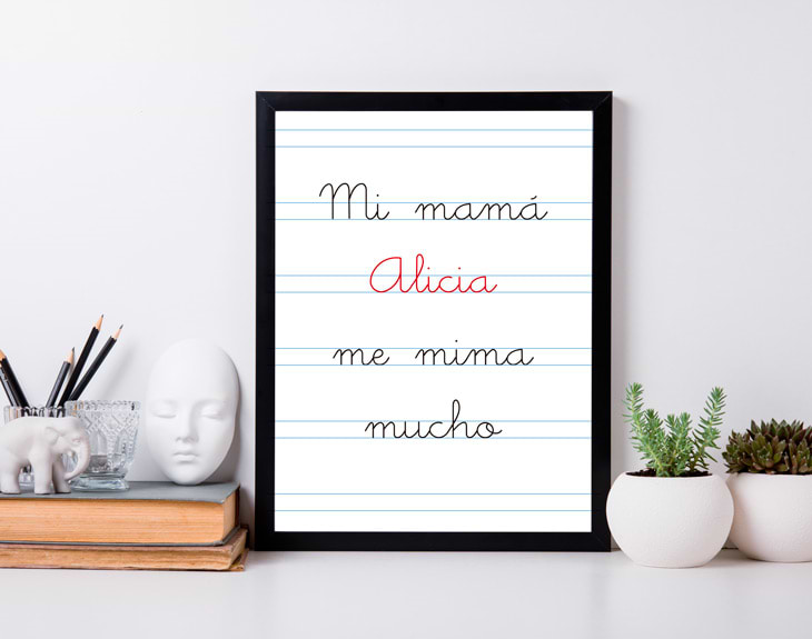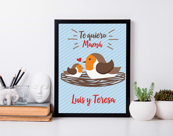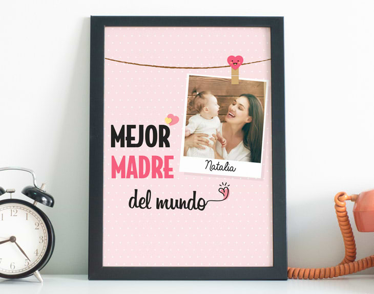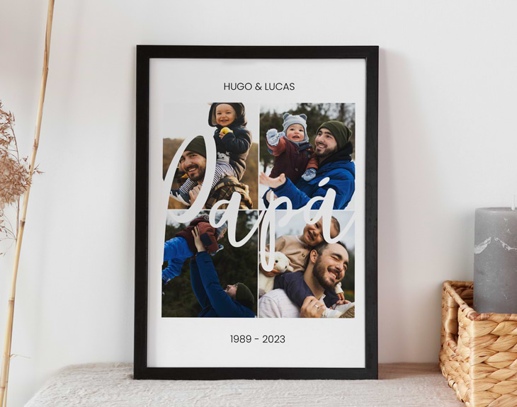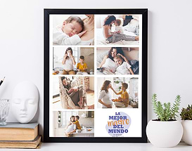 Los mejores recuerdos con tu ser querido merecen estar en un lugar especial de tu hogar. Para que esas fotos tan bonitas no queden solo en tu móvil, te presentamos nuestra lámina personalizada. Con un diseño "Collage Recuerdos", podrás escoger tus cuatro fotos favoritas y nosotros nos encargaremos de que queden perfectas. Este regalo puede ser el más emotivo, ya que además, es personalizable. Añade el texto o mensaje que desees para acompañar esas preciosas fotos. Será un detalle lleno de cariño y recuerdos muy especiales. Imagina la cara de ilusión de la persona que lo reciba. ¡Es ideal para ocasiones como el Día del Padre/Madre, cumpleaños, aniversarios o cualquier momento especial! Puedes elegir entre dos opciones de tamaño para la lámina: una gigante tamaño póster, perfecta para colgar en la pared, o un elegante diploma con marco tamaño A4, ideal para colocar en cualquier estantería. ¡La que más te guste podrá ser tuya! Personalizar tu lámina es muy fácil. Solo tienes que añadir el producto al carrito y acceder al área de personalización. Allí podrás cargar tus fotos favoritas y escribir el mensaje que desees. Nosotros nos encargamos de todo lo demás para que tu regalo quede perfecto y listo para sorprender. ¡Será un regalo original para esa persona especial! Importante: Si escoges la opción "versión digital" te enviaremos el diseño por mail en alta resolución. De esta manera, tendrá la calidad necesaria para que puedas imprimirla en cualquier formato. En el formulario de entrega tendrás que seleccionar la opción "Recibir por Email para ahorrar los gastos de envío". Importante: El color del marco puede variar según stock.