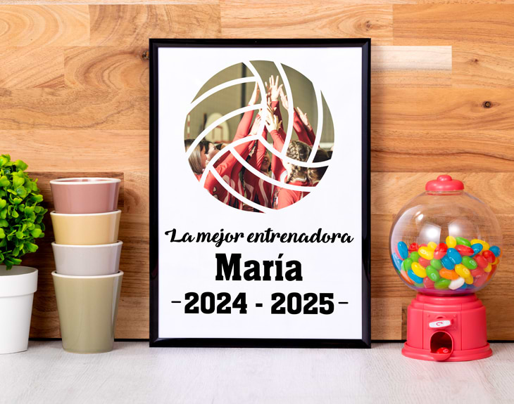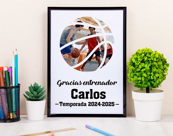 Cuando llega el final de temporada, es el momento perfecto para reconocer a esos entrenadores que han estado al pie del cañón, apoyando, motivando y formando a sus equipos. Por eso, nuestra lámina personalizada con diseño "Entrenador balón" es el regalo ideal para agradecerles todo su esfuerzo y dedicación. Esta lámina única es perfecta para entrenadores de fútbol, rugby, baloncesto, voleibol, tenis o pádel, ya que podrás escoger el balón deportivo que más les represente y acompañar la imagen con una foto y un texto personalizado que hará que este detalle sea aún más especial. Si buscas un regalo original para entrenadores al final de temporada, esta lámina se convertirá en un recuerdo imborrable, lleno de significado y cariño. Personalizar esta lámina es muy sencillo. Solo tienes que añadir el producto al carrito, entrar en el área de personalización y subir la foto, seleccionar el balón deportivo y escribir el texto que quieras. Nosotros nos encargamos de que quede perfecto y listo para regalar. Un detalle único y original para celebrar el cierre de temporada y decir “¡gracias, entrenador!” con mucho estilo. Importante: El color del marco puede variar según stock. Importante: Las opciones de lámina gigante y grande no incluyen marco. Solo tiene marco la opción de A4. Podrás elegir esta lámina en el tamaño que quieras: A4, grande (48 x 33 cm) o gigante (85 x 60 cm). Importante: Si escoges la opción "versión digital" te enviaremos el diseño por mail en alta resolución. De esta manera, tendrá la calidad necesaria para que puedas imprimirla en cualquier formato. En el formulario de entrega tendrás que seleccionar la opción "Recibir por Email para ahorrar los gastos de envío".