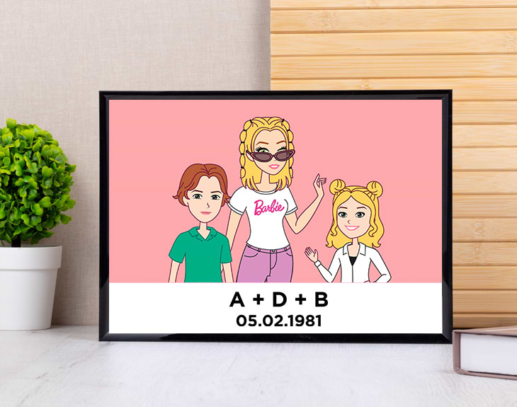 ¿Te imaginas transformar a todos tus familiares en habitantes de Dollinaland? ¿A que sería genial? Si siempre has soñado con pertenecer a este mundo y sentirte como una auténtica Dollina tenemos algo que te va a encantar. ¡Nuestra lámina personalizada con diseño "Madre Dollina Pop"! Podrás representar a tus seres queridos en forma de Dollinas y Ken porque es personalizable. ¡Es genial! Hay un montón de rasgos y accesorios diferentes para que puedas representar a tus familiares a la perfección. Sin duda, esta lámina se puede convertir en un regalo de lo más original para sorprender a tu mamá. Ya sea por su cumpleaños, por el Día de la Madre o simplemente... ¡Por ser la mejor madre del mundo! Será el regalo perfecto, le encantará. Por último, personalizar esta lámina es súper sencillo. El primer paso a seguir consiste en añadir el producto al carrito y entrar al área de personalización. Una vez ahí, ya puedes crear a estos avatares de Dollina y Ken como tú quieras. ¡Ya verás qué divertido! Pronto estará perfecto y listo para regalar. ¡Será un regalo muy original para fans de Dollina! Importante: Si escoges la opción "versión digital" te enviaremos el diseño por mail en alta resolución. De esta manera, tendrá la calidad necesaria para que puedas imprimirla en cualquier formato. En el formulario de entrega tendrás que seleccionar la opción "Recibir por Email para ahorrar los gastos de envío". Importante: El color del marco puede variar según stock.