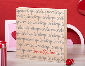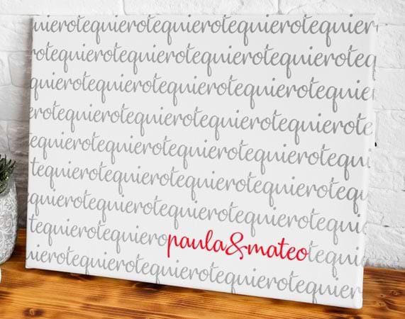 No hay manera más original y romántica para decir te quiero. Esta lámina personalizada guardará vuestros nombres para siempre envueltos en un mar de palabras "te quiero", con el fin de que vuestro amor dure para toda la vida. Está diseñado para las parejas más enamoradas del mundo, o para las que se acaban de comprometer. Es un regalo 100% romántico y perfecto para sacar una sonrisa a tu pareja. Dinos los nombres y lo tendrás listo para colgar en el rincón más íntimo. Importante: El color del marco puede variar según stock. Podrás elegir esta lámina en dos tamaños: A4 o gigante, este último con unas medidas de 85 x 60 centímetros.