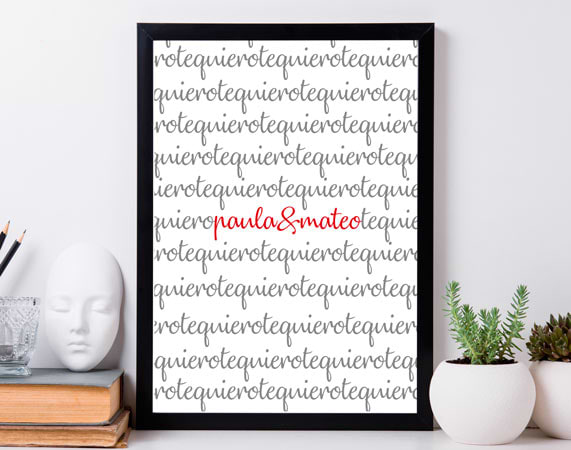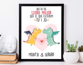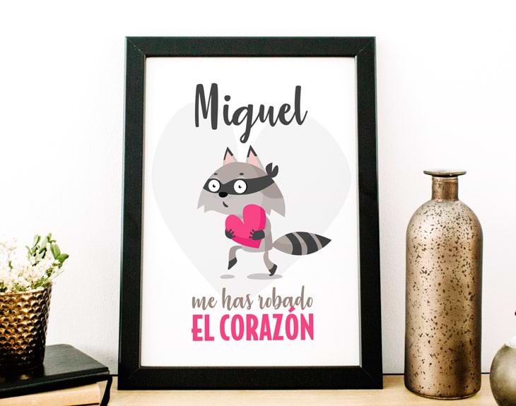 ¿Se acerca vuestro aniversario o cualquier otra fecha señalada?¿Todavía no has encontrado un regalo realmente original y especial?¡Que no cunda el pánico! Nuestra lámina personalizada "Wall-e enamorado" es precisamente lo que estabas buscando! Solamente tienes que decirnos vuestros nombres para que podamos insertarlos en el diseño y que así esa persona que te ha robado el corazón se muera de emoción al verlo. Y es que, además es un elemento decorativo perfecto para cualquier estancia de la casa. ¡Seguro que lo pone en su rincón favorito para verlo cada día! Si encima entre sus películas favoritas se encuentra la de Wall-e, no pienses más, es el detalle que más ilusión le va a hacer de toda la historia. Además, tienes la opción de elegir dos tamaños de lámina: A4 o 60x85 cm. Importante: El color del marco puede variar según stock.