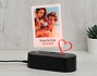 A lo largo de todo este tiempo seguro que tienes grandes momentos vividos con tu pareja. Desde el día que os conocisteis hasta el momento en el que comenzasteis a vivir juntos habéis experimentado un montón de situaciones que os han hecho cada vez más fuertes. Esta lámpara de metacrilato personalizada es perfecta para rememorar los más importantes. ¡Un detalle romántico! Esta lámpara de metacrilato con diseño de fotos Polaroid está pensada como un producto vintage, hecho para las personas que aman los detalles antiguos. Puede contar con dos bases distintas: una base negra con diferentes colores y una de madera, con una sola luz blanca. El metacrilato tiene una medida de 14 x 14 centímetros, por lo que cabrá en cualquier rincón de vuestro nidito de amor. ¡Qué es lo único que falta en este regalo original para parejas? ¡Vuestros mejores recuerdos! Añade el producto que quieras al carrito y entra en el diseñador. Dentro encontrarás la plantilla del producto, donde tendrás que escoger el diseño que quieres para tu lámpara. Una vez escogido el número de imágenes, solo tendrás que subirlas al sistema y crear tu propio diseño amoroso. Medidas aproximadas del metacrilato: 14 x 14 cm. Funcionamiento: La lámpara funciona con un cable USB (incluido). La base negra cuenta con diferentes colores, que se pueden adaptar a tus gustos: si pulsas una vez te saldrá un color, si pulsas de nuevo, aparecerá otro, y así sucesivamente. También podrás elegir la opción intermitente: ¡todas las luces creando un festín de colores! Mientras tanto, la base de madera solo cuenta con una luz, que se apagará y se encenderá cada vez que aprietes el interruptor. Puedes escoger entre las siguientes bases: -Base negra: sus medidas son de 8,3cm (diámetro) x 4,8cm (alto), y está hecha de plástico. Cuenta con luces de colores. -Base de madera: sus medidas son de 14,5x6x3,5cm, y está hecha de madera. Cuenta con una sola luz, de color blanco. Importante: puede que el metacrilato llegue con un plástico protector.