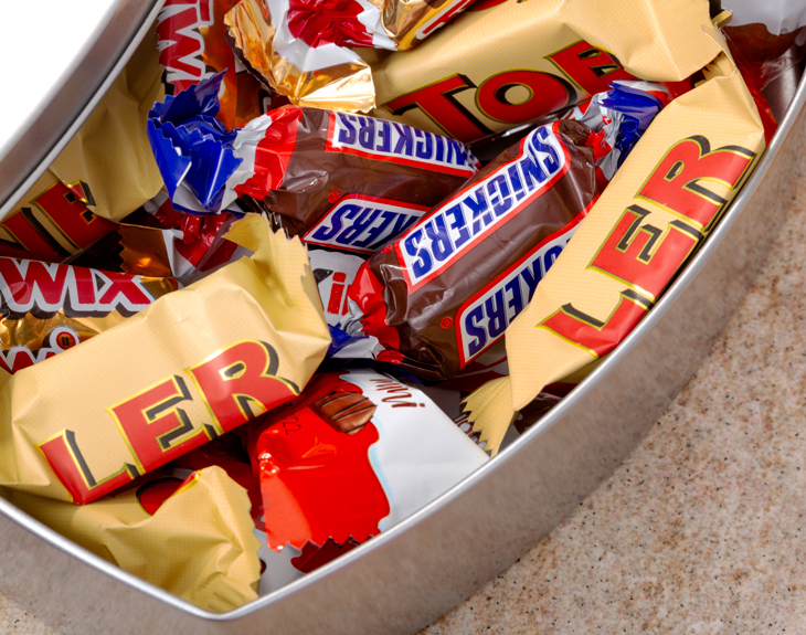 • Lata corazón personalizada con mix de chocolatinas. • Tarjeta Recordatoria.