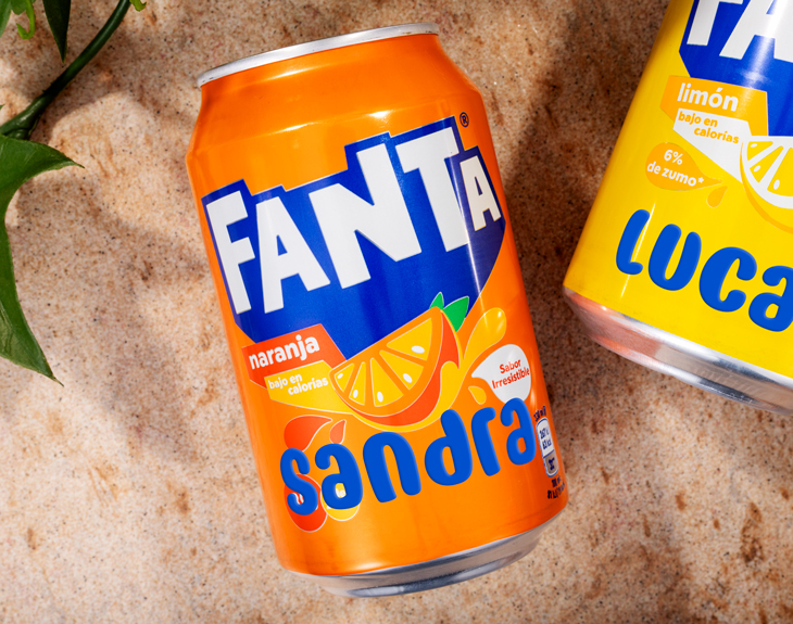 Refresca tu día con el inconfundible sabor de la Fanta de naranja o limón, ahora en una lata personalizada con tu nombre. La combinación perfecta entre el zumo de frutas y sus burbujas irresistibles se convierte en una experiencia aún más especial cuando lleva tu toque personal. Esta lata se transformará en mucho más que una bebida: es un regalo original y divertido, ideal para sorprender o coleccionar. Perfecta para cumpleaños, amigo invisible, o simplemente tener un detalle con una persona especial. Añade el producto al carrito y accede al área de personalización, allí podrás escribir el nombre o palabra que quieras. Así de fácil podrás sorprender a esa persona especial y crear un detalle original para los auténticos amantes de esta bebida tan refrescante. Tamaño de la lata: 330 ml.