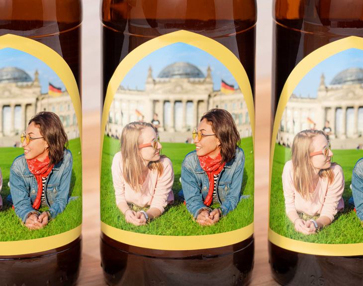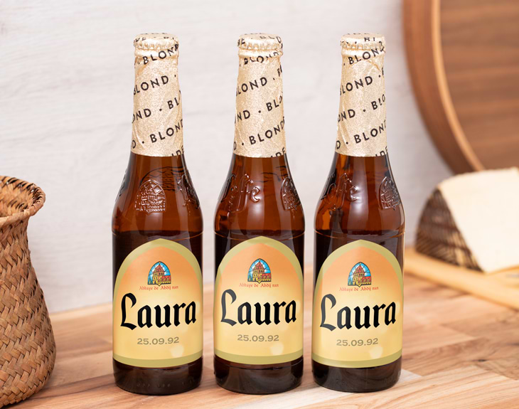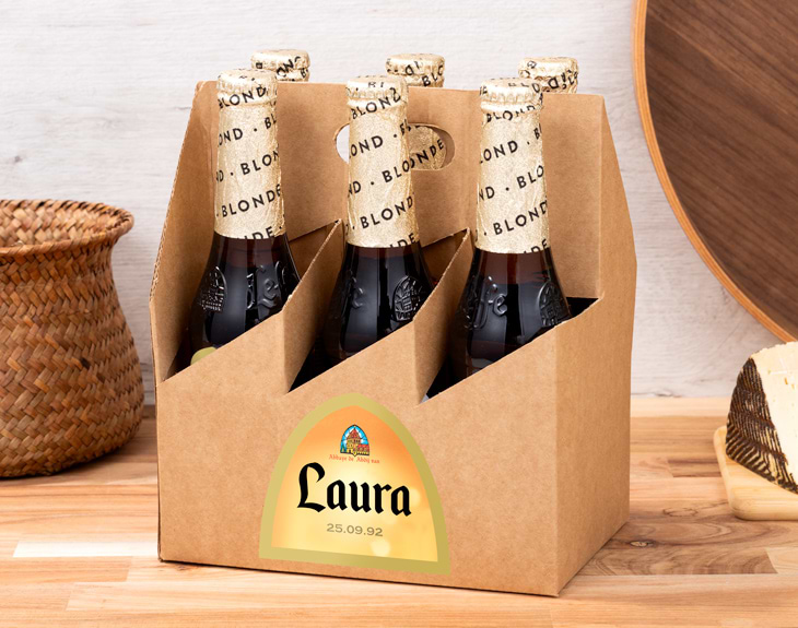 Aquí te traemos un regalo que toda persona amante de la cerveza sabrá apreciar como se merece: seis botellas de Leffe Blonde con la etiqueta personalizada, en su formato más elegante con el cuello de la botella dorado. Es tan sencillo como que elijas una foto o un mensaje para las etiquetas, ya que nosotros nos encargaremos de prepararlo para que llegue todo a destino en condiciones óptimas. Leffe Blonde es una cerveza con siglos de antigüedad. Comenzó a hacerse en Bélgica en el año 1240, en una antigua abadía que desarrolló una receta legendaria. Hoy en día se sigue elaborando en Bélgica, desde donde se distribuye a más de 60 países. Seguro que ya lo sabías, pero la Leffe está buenísima. Es una Pale Ale con cierto gusto a vainilla y clavo, con un final ligeramente agridulce y una espuma muuuy cremosa. Dicen que es perfecta para maridar con quesos cremosos y carnes blancas. Podrás elegir si quieres personalizar las seis cervezas con el mismo diseño para todos o con un diseño diferente para cada una de ellas.