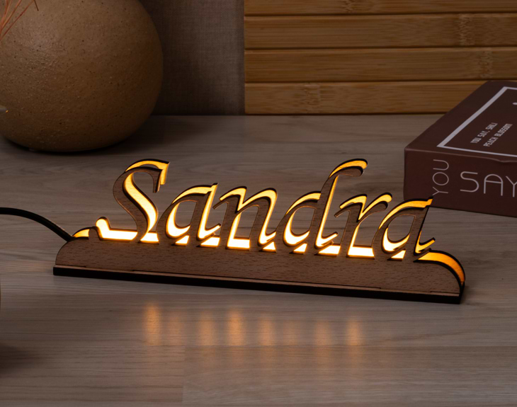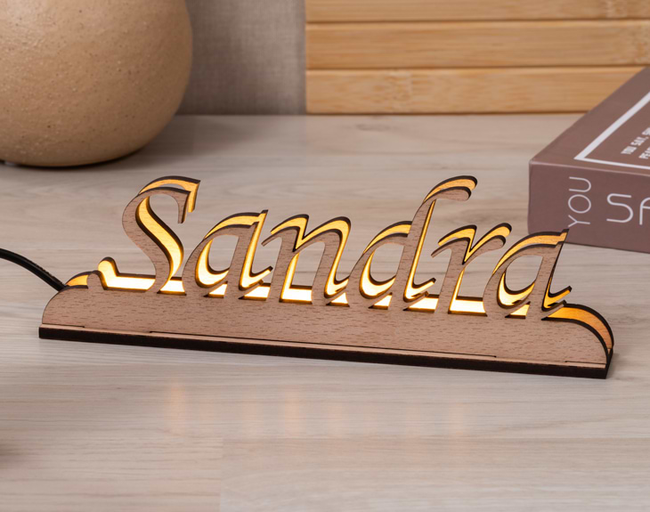 Si se acerca una fecha especial para un ser querido, seguro que estarás deseando darle una sorpresa a la altura de lo mucho que lo/la quieres. Si este año quieres salirte de lo cotidiano, seguro que nuestro Letrero de madera con luz personalizado será una opción excelente para dejar sin habla a todos tus amigos y familiares. Este regalo original está fabricado en madera natural y nosotros mismos lo tallamos con el nombre que nos indiques al hacer tu pedido. En su interior, se encuentra una tira de luces LED que el destinatario puede apagar o encender cuando quiera, ya que cuenta con un interruptor también. Al encender la luz, esta saldrá hacia fuera haciendo que el nombre del destinatario destaque al máximo. ¡Será un regalo de lo más impactante! Esta lámpara personalizada es ideal para adornar su mesita de noche, para decorar el cuarto de un bebé o un niño, o para dar personalidad y estilo al salón o a la entrada de vuestra casa. Si tienes hijos y les da miedo la oscuridad, esta preciosa lamparita les ayudará a sobrellevar la noche y encima dará un toque ideal a sus cuartos. También queda preciosa cuando todas las luces del salón se apagan y te relajas con tu pareja en el sofá para ver la tele. ¡Tú eliges el momento y el lugar! Hazte con este regalo único y exclusivo y estamos seguros de que el éxito lo tendrás asegurado. Funciona genial como regalo de cumpleaños pero también será un elemento ideal para sorprender a esa personita que se acaba de independizar. ¡Incluso es un detalle excelente como regalo de comunión o de nacimiento! Las posibilidades son enormes y solo te queda a ti elegir a quién sorprenderás con este letrero tan especial. Medidas del letrero: 20 cm ancho x 2,7 cm profundidad (el alto varía en función del tamaño del nombre) Ancho del cable (no incluida la tira LED): 150cm. Material: madera. Funcionamiento: La tira de luces funciona con un cable USB (incluido), que podrás conectar a cualquier toma USB o a un cabezal para enchufar directamente a la luz. Se encenderá la luz interna de la madera una vez presiones el interruptor del cable.