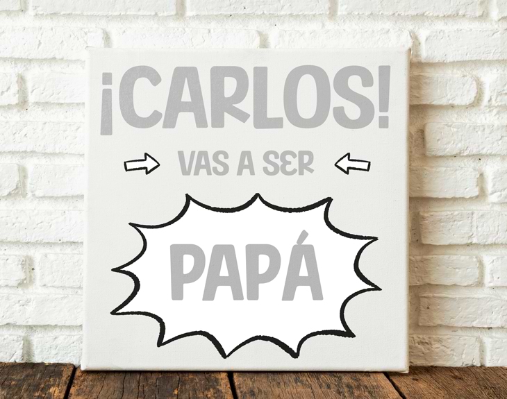 ¿Estás embarazada y el padre del bebé todavía no lo sabe? Si quieres sorprender al padre de la criatura de la manera más original, nosotros tenemos la mejor opción. Se trata de nuestro lienzo natalicio personalizado con diseño "Vas a ser papá". Es ideal para envolverlo y dárselo de sorpresa. ¡Le encantará! Será la mejor noticia que puede recibir, le hará muchísima ilusión saber que va a ser papá. ¡Vuestra aventura más emocionante comienza ahora! Lo más especial de este lienzo es que es personalizable. ¡Podrás escribir el nombre de ese papá primerizo! Imagina la ilusión que le hará esta sorpresa tan bonita, se quedará son palabras. Personalizar este lienzo es súper sencillo. El primer paso a seguir consiste en añadir el producto al carrito y entrar al área de personalización. Una vez ahí, ya puedes escribir el nombre de ese papá primerizo y darle esta noticia tan bonita. Pronto estará perfecto y listo para regalar. ¡Será un original regalo para padres primerizos! • Los laterales quedan envueltos con el propio lienzo. • Bastidor de 3cm de madera samba. • Impresión a 1440dpi. • Tintas con protección para rayos UV. • Lienzo de algodón de alta calidad ultra blanco de 415 gramos. • Se entrega montado, listo para montar.