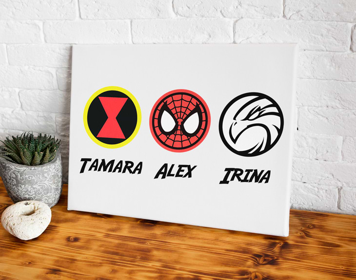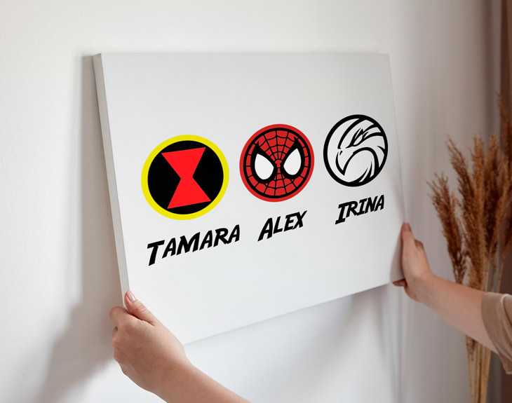 ¿Conoces a alguien que sabe absolutamente todo acerca de los superhéroes?¿Tiene todos los cómics que existen y se ha visto mil veces las pelis de Marvel?¡Entonces este lienzo personalizado tiene su nombre! Se trata de un diseño muy especial en el que podrás elegir el emblema de su superhéroe preferido y decirnos su nombre para insertarlo justo debajo...¿Te imaginas la cara que pondrá al verlo?¡Le gustará muchísimo! • Los laterales quedan envueltos con el propio lienzo. • Bastidor de 3cm de madera samba. • Tintas con protección para rayos UV. Importante: a partir de 6 personajes. se colocarán en dos filas. Es decir: - Familia de 6 personajes: 3 en la fila superior, y 3 en la inferior. - Familia de 7 personajes: 4 en la fila superior, y 3 en la inferior. - Familia de 8 personajes: 4 en la fila superior, y 4 en la inferior.