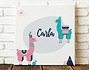 Si hace un tiempo triunfaban las sandías, los unicornios y los flamencos, ahora tenemos nuevo animal de moda...¡Las llamas! Por eso hemos creado este lienzo personalizado tan divertido para que puedas sorprender a esa persona que tanto quieres. ¡Seguro que lo cuelga para siempre en su habitación!¡Le encantará! • Los laterales quedan envueltos con el propio lienzo. • Bastidor de 3cm de madera samba. • Impresión a 1440dpi. • Tintas con protección para rayos UV. • Lienzo de algodón de alta calidad ultra blanco de 415 gramos. • Se entrega montado, listo para colgar.