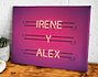 Si vuestra historia de amor es de las que deslumbran, este lienzo personalizado es perfecto para vosotros. Simulando las típicas letras de luces de neón, creamos el mensaje que tú quieras y lo convertimos en un lienzo que te servirá para decorar cualquier lugar. • Los laterales quedan envueltos con el propio lienzo. • Bastidor de 3cm de madera samba. • Tintas con protección para rayos UV. • Se entrega montado, listo para colgar.