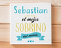 Si tu sobrino y tú tenéis una relación envidiable y quieres sorprenderle de una forma original, este lienzo personalizado es el regalo perfecto.Aprovecha su cumpleaños, las navidades o cualquier ocasión especial para darle un bonito detalle como este. Además es una forma divertida de decirle lo mucho que quieres a tu sobrino. Seguro que le hace muchísima ilusión y lo colgará en su habitación.Para personalizarlo, solamente nos tendrás que decir el nombre de tu sobrino y nosotros lo añadiremos a este diseño tan chulo. ¡Le encantará!• Los laterales quedan envueltos con el propio lienzo. • Bastidor de 3cm de madera samba. • Impresión a 1440dpi. • Tintas con protección para rayos UV. • Lienzo de algodón de alta calidad ultra blanco de 415 gramos. • Se entrega montado, listo para colgar.