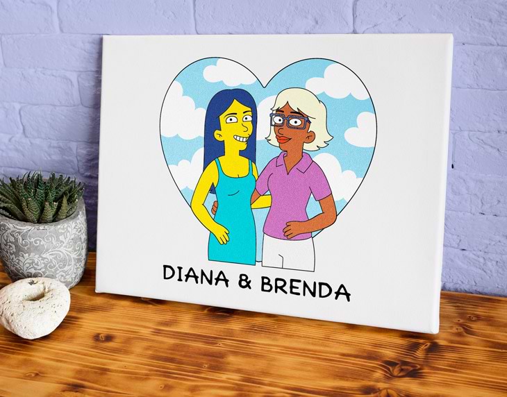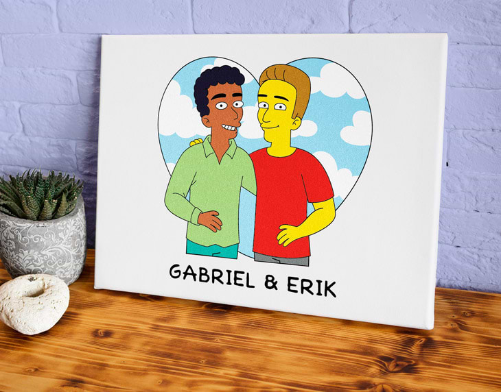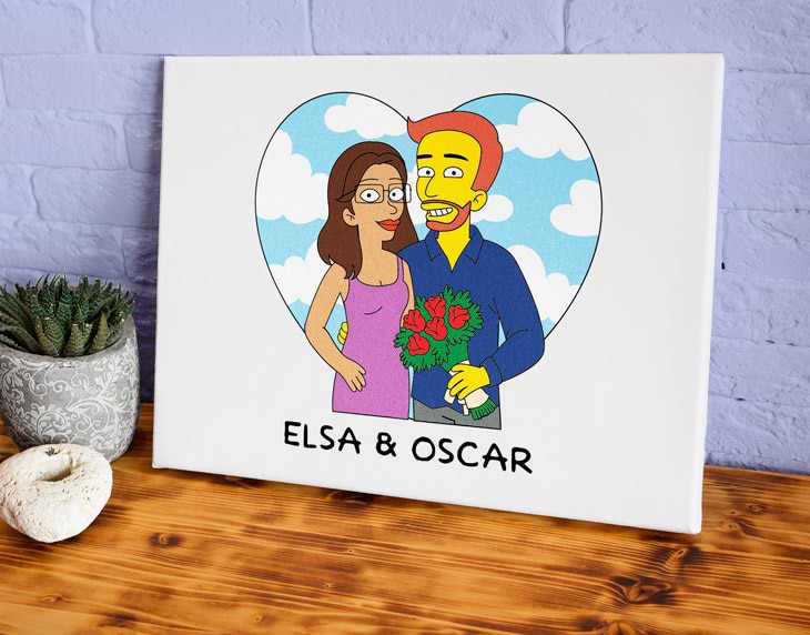 Puede que siempre hayas querido convertirte en un miembro más de la apacible comunidad de Springfield. Con este regalo original para enamorados, vuestro amor traspasará toda clase de fronteras. Añade el producto al carrito y crea vuestros personajes desde cero para este lienzo. Ponle vuestro pelo, ropa, y todas esas cosas que hacen que seáis tan especiales a este Simpson.