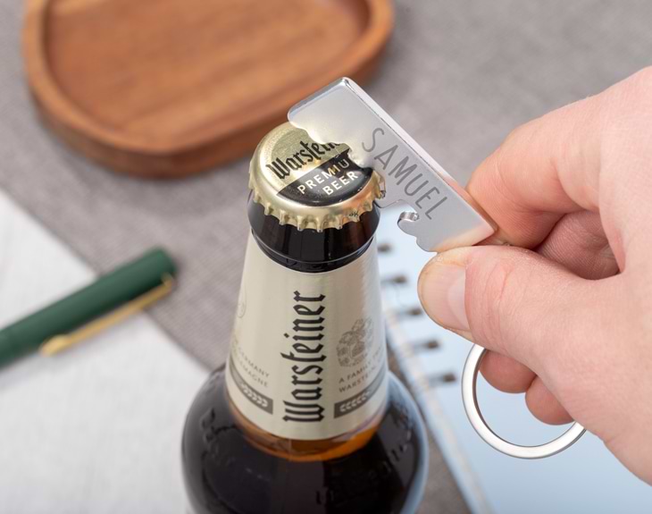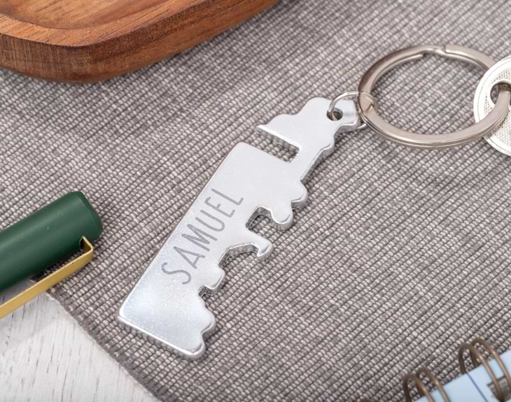 ¿Cuántas veces has acabado por ahí tomando cervezas con tus amigos y no teníais cómo abrir las botellas? Eso nunca más te volverá a pasar con este llavero personalizado. Y es que cada vez que salgas de casa tendrás un abrebotellas que te salvará de cualquier situación. También es perfecto para regalar a esa persona que sabe cuándo sale de casa pero no cuándo vuelve... Solamente tienes que decirnos su nombre para personalizar y tendrá el mejor llavero del mundo. Además, tiene una forma súper divertida de camión. ¿No te parece el mejor detalle del mundo? Importante: El color del llavero puede variar según stock.