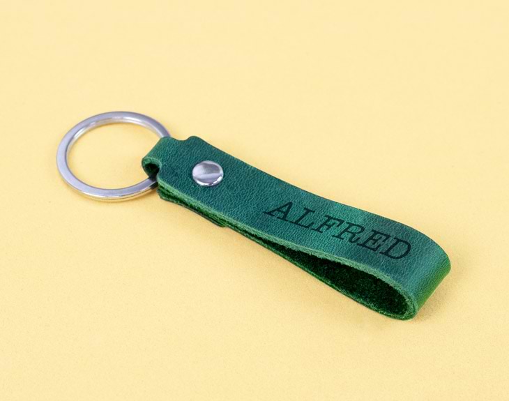¿Cuál es la mejor manera de no perder las llaves de casa? ¡Es algo que pasa a menudo! Se te pueden caer en la calle, te las puedes haber dejado en casa... tus llaves pueden desaparecer de muchísimas maneras. Para hacer que esto no suceda, siempre puedes llevar una variedad de llaveros que hagan que tus llaves abulten más y sean más visibles. Hay muchos tipos de llaveros, para todos los gustos y colores. Puede que haya personas que adoren los llaveros estrambóticos y coloridos, de esos que se hacen notar en cualquier lado. Sin embargo, los más tradicionales también se merecen un producto que les represente al 100%. Para estas personas tenemos un regalazo: ¡nuestro llavero clásico de cuero personalizado está hecho para ellos! ¿Quién no querría un llavero personalizado como este? Te servirá de decoración para tus llaves. Este producto está hecho de cuero, y tiene un color verde perfecto para cualquier amante de este color. Si quieres tener un detalle con esa persona que quieres... ¡este es el regalo original. Dinos su nombres y nosotros lo grabaremos en el llavero. Medida: 8cm de largo.