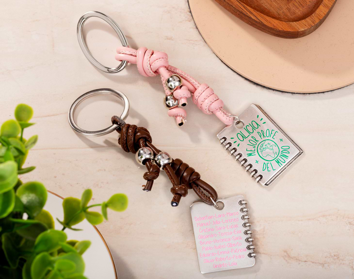 Llavero personalizado con forma de cuaderno. ¡Perfecto para sorprender al mejor profe y a la mejor profe del mundo! Podrás poner en él el texto que quieras, además de elegir el color del grabado y el tipo de llavero. También tienes la opción de grabar por las dos caras. De esta manera, podrás poner todos los nombres de la clase en la parte de detrás. Medidas: 3x4 cm