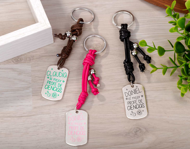 Tu profe de Ciencias, después de todo un curso entre fórmulas y probetas, seguro que se merece un detalle. ¿Qué tal este llavero personalizado? Dinos su nombre, el tipo de llavero que quieres y el color, y crearemos un regalo único. ¡Seguro que tu profe se muere del amor! Medidas: 3,8 x 2,5 cm.
