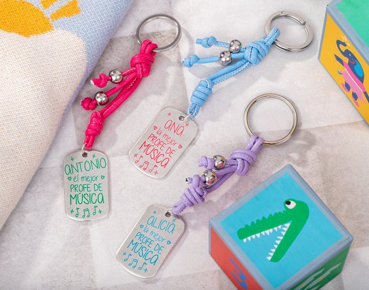 Llavero personalizado para profes de músicas. ¡El regalo para los docentes con más ritmo! Podrás poner el nombre de esa persona que se ha dejado la piel a lo largo del curso, escoger el tipo de llavero y también el color. Medidas: 3,8 x 2,5 cm.