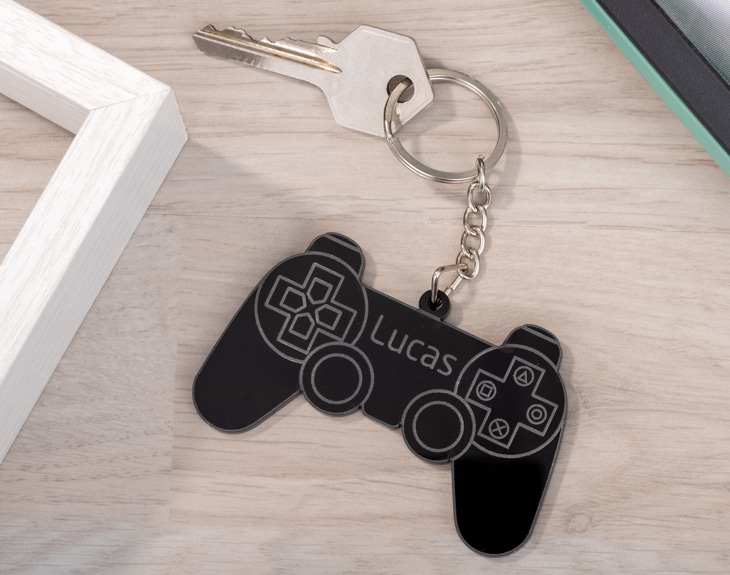 ¿Buscas un detalle único y divertido? Este llavero de metacrilato personalizado es justo lo que necesitas para darle un toque original a tus llaves, mochila o bolso. Es perfecto como regalo de cumpleaños para gamers, frikis o para quienes adoran los accesorios con personalidad. Lo mejor es que puedes personalizarlo con el nombre o texto corto que tú elijas y escoger el diseño que más te guste. Además, podrás seleccionar el color del metacrilato para convertirlo en un accesorio totalmente a tu estilo. Este llavero grabado con láser quedará nítido, definido y muy duradero. Personalizarlo es muy sencillo: solo tienes que añadirlo al carrito, elegir el color del metacrilato, diseñarlo a tu gusto y listo. Tendrás un llavero personalizado con nombre práctico, original y con mucho rollo. Haz que llevar las llaves transmita toda la esencia gamer y un poco de ti también. Medidas aproximadas: 8cm x 5.5cm