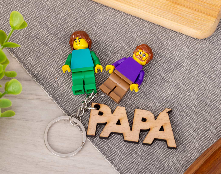 Este llavero de madera "Papá" con Minifiguras de Lego es el regalo perfecto para sorprender a papá en su día. Un detalle único y práctico que le permitirá llevar siempre consigo un pedacito de la familia. La palabra "Papá" le da un toque personal, y lo mejor es que puedes personalizar una o más minifiguras Lego para representarlo de la forma más divertida. ¡Elige entre una y hasta cinco figuras por llavero! ¡Cada vez que papá saque las llaves, pensará en ti! Personalizarlo es muy sencillo. Solo añade el producto al carrito y entra al área de personalización. Allí podrás diseñar la figura Lego como quieras: elige su rostro, el peinado, la ropa… ¡tendrás una figura Lego única! Nosotros nos encargamos de ensamblar todas las piezas para que el resultado sea perfecto. Además, con este llavero siempre sabrá dónde están las llaves, ¡y tendrá un toque Lego para alegrarle el día! Sin duda, será un regalo original para el Día del Padre. Medidas figuras Lego: 4 cm de alto. En el caso de que una pieza no esté disponible, se sustituirá por otra similar.