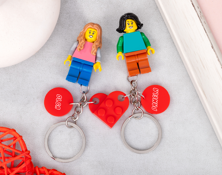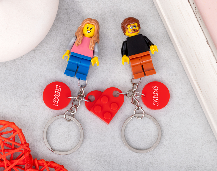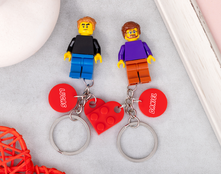 Por fin... ¿Tu pareja y tú habéis dado el gran paso y en unos meses vais a estar viviendo juntos? Si te hace muchísima ilusión y quieres hacerle un regalito, nuestros llaveros Minifigura Pareja Lego será el detalle perfecto. Es una preciosa forma de demostrarle las ganas que tienes de tener vuestra propia casita y convivir, sin duda, le encantará. Si sois súper fans de las piezas de Lego, seguro que alguna vez os habéis preguntado como sería si viviéseis en el mundo lego, pues gracias a este llavero podrás crear a vuestra propia figurita. ¡Es ideal! Así cada uno tendrá bien localizadas sus llaves de casa y no las perderá nunca. Además de las figuritas, este llavero consta de dos piezas de Lego que cuando se unen, forman un corazón, y vienen con una pequeña chapita en la que podrás poner vuestros nombres. Ya sea para el día de los enamorados, para sorprender a tu pareja, a cualquier familiar o amigo creemos que este regalo es ideal. Por último, para diseñar a estas minifiguras, lo primero es añadir el producto al carrito y entrar al área de personalización. Una vez ahí, ya puedes elegir las características de tu figura Lego y nosotros nos encargamos de montar las piezas para crear a una pareja de Legos igualitos a vosotros. Pronto estarán perfectos y listos para regalar. ¡Será un original regalo para fans de Lego! Color del corazón de Lego: rojo. En el caso de que una pieza no esté disponible, se sustituirá por otra similar.
