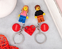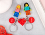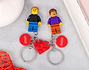 • Llaveros Pareja Lego Minifigura (dos piezas). • Tarjeta Recordatoria.