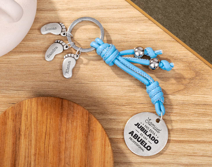 ¡Está claro que los abuelos son los mejores! Siempre cuidan de nosotros, son muy atentos y nos quieren un montón. Si tu abuelo es todo un profesional para cuidar a todos sus nietos... tenemos algo que le encantará. Se trata de nuestro llavero con huellitas personalizado con diseño "Abuelo profesional", ¡será un detalle precioso! Si quieres sorprenderle en alguna fecha especial como en su cumpleaños, en el Día del Padre o simplemente por ser el mejor abuelo del mundo... ¡Este llavero es ideal para eso! Gracias a este llavero, no perderá nunca las llaves y las encontrará siempre a la primera. Lo mejor es que es personalizable, podrás escribir el nombre que tú quieras. Además, llevará a sus seres queridos siempre con él, porque además de personalizar, también puedes elegir cuantas huellitas de pies quieres poner, ¡para que elijas una por cada familiar! Por último, personalizar este llavero es súper sencillo. El primer paso a seguir consiste en añadir el producto al carrito y entrar al área de personalización. una vez ahí, ya puedes escoger el llavero que quieras y escribir los nombres de tus seres queridos. Pronto estará perfecto y listo para regalar. ¡Será un original regalo para abuelos! Medida de largo con la medalla: 8 cm aproximadamente. Medida diámetro medalla: 3,3 cm aproximadamente