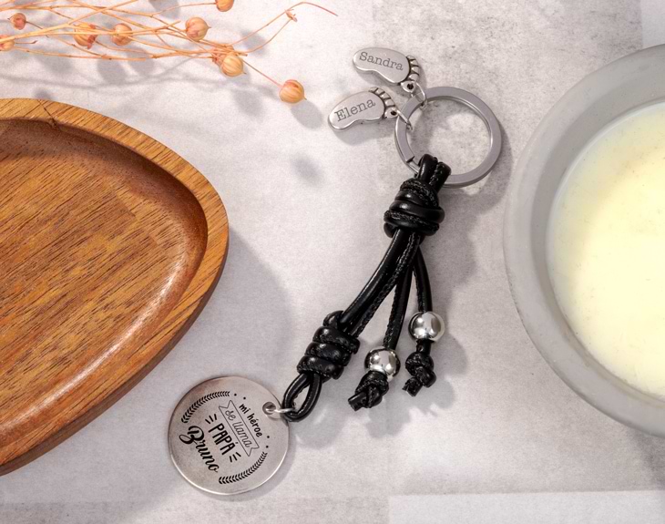 Seguro que para ti, tú padre es el mejor del mundo. Y es que los padres son los héroes sin capa. No hay acto más heroico que cuidar y proteger a nuestros hijos, sin duda, un padre es todo un ejemplo a seguir. Si quieres demostrarle lo mucho que lo admiras... ¡Nuestro llavero con huellitas personalizado es la forma perfecta! Un llavero será el regalo perfecto para cualquier ocasión especial, como el Día del Padre, un cumpleaños o incluso un amigo invisible. ¡Es genial porque las llaves de casa es algo que siempre llevará consigo! Pero lo mejor de todo, es que es personalizable. ¡Podrás escribir el nombre que tú quieras! Por último, personalizar este llavero es súper sencillo. El primer paso a seguir consiste en añadir el producto al carrito y entrar al área de personalización. una vez ahí, ya puedes escoger el llavero que quieras y escribir los nombres de tus seres queridos. Pronto estará perfecto y listo para regalar. ¡Será un original regalo para padres! Medida de largo con la medalla: 8 cm aproximadamente. Medida diámetro medalla: 3,3 cm aproximadamente