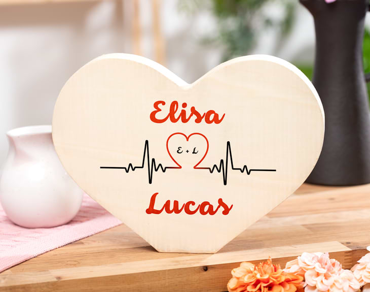 ¡Ya se acerca el día de los enamorados! Si este año vas a celebrar San Valentín con tu pareja, está claro que tendrás que hacerle el mejor regalo de todos. ¡Nuestro corazón de madera personalizado con diseño "Latido de amor" es ideal para esta ocasión! Y es que este corazón también se puede convertir en un regalo para vuestro aniversario, un cumpleaños, o para cualquier ocasión especial. ¡Es genial! Lo más bonito de este corazón es que es personalizable. ¡Podrás escribir vuestros nombres! Regalar este corazón es un preciosa forma de demostrarle todo el amor que sientes hacia esa persona tan especial. Imagina la ilusión que le hará recibir este regalo tan original, ¡le encantará! Personalizar este corazón de madera es súper sencillo. El primer paso a seguir consiste en añadir el producto al carrito y entrar al área de personalización. Una vez ahí, ya puedes escribir vuestros nombres. Pronto estará perfecto y listo para regalar. ¡Será un original regalo para enamorados! Medidas: 30 x 22 x 3 cm. Importante: Las maderas tienen vetas y estas quedan reflejadas en la imagen.