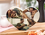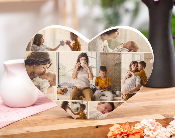 • Madera corazón con foto. • Tarjeta recordatoria.