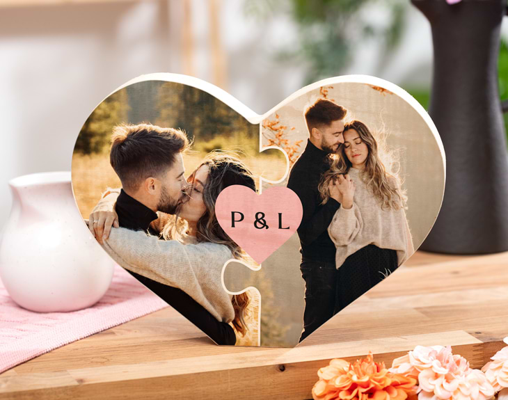 Ya se acerca una de las fechas más especiales y románticas del año: ¡el día de los enamorados! Si tu ya has encontrado a esa persona tan especial con la que quieres celebrar San Valentín, está claro que tienes que hacerle el mejor regalo de todos. Por eso, nuestro corazón de madera personalizado es ideal para sorprender a esa persona en una ocasión como esta. Lo más bonito de este corazón es que es personalizable. Podrás poner tus fotos favoritas con tu amorcito, fotos en las que salgáis guapísimos, de algún viaje que hayáis hecho, cualquier foto que os traiga buenos recuerdos es ideal para personalizar este corazón de madera. ¡Le encantará! Personalizar este corazón de madera es súper sencillo. El primer paso a seguir consiste en añadir el producto al carrito y entrar al área de personalización. Una vez ahí, ya puedes añadir las fotos que más te gusten. Pronto estará perfecto y listo para regalar. ¡Será un original regalo para enamorados! Medidas: 30 x 22 x 3 cm. Importante: Las maderas tienen vetas y estas quedan reflejadas en la imagen.