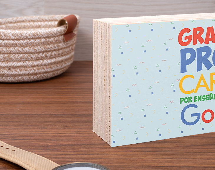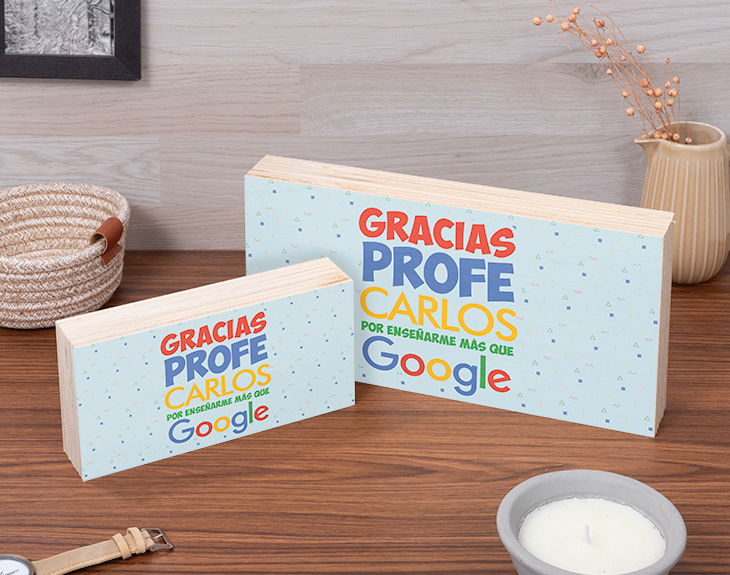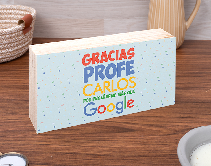 Sorprende a tu profe favorito con esta madera personalizada tan especial. Si buscas una forma diferente de agradecer a tu profe todo lo que has aprendido en sus clases, este es el regalo perfecto. Simplemente nos tienes que decir su nombre y lo grabaremos en este diseño tan divertido. Aprovecha el final de curso para demostrarle lo mucho que valoras todo su esfuerzo, trabajo y su infinita paciencia. Seguro que le hará mucha ilusión y lo guardará con mucho cariño. ¿No te parece una idea fantástica? Importante: Las maderas tienen vetas y estas quedan reflejadas en la imagen. Tenemos dos tamaños disponibles: - 20 x 10 x 4,2 cm. - 30 x 15 x 4,2 cm