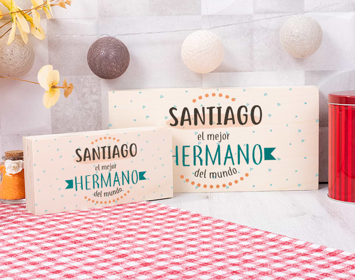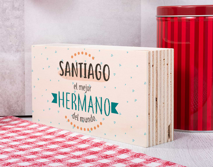 Si quieres darle una sorpresa a tu hermano que jamás olvidará, la madera personalizada El mejor hermano del mundo, es la opción perfecta. Si a pesar de todas las peleas y discusiones sois inseparables, este regalo es perfecto para agradecerle todo lo que ha hecho por ti. Además es una forma muy original de decirle que es el mejor y que le quieres mogollón. Para personalizarlo, solo nos tendrás que decir el nombre de tu hermano y nosotros lo grabaremos a este diseño tan tierno. Estamos convencidos de que le hará muchísima ilusión y lo pondrá en su habitación de decoración. Seguro que le sacas una gran sonrisa. Tenemos dos tamaños disponibles: - 20 x 10 cm. - 30 x 15 cm.