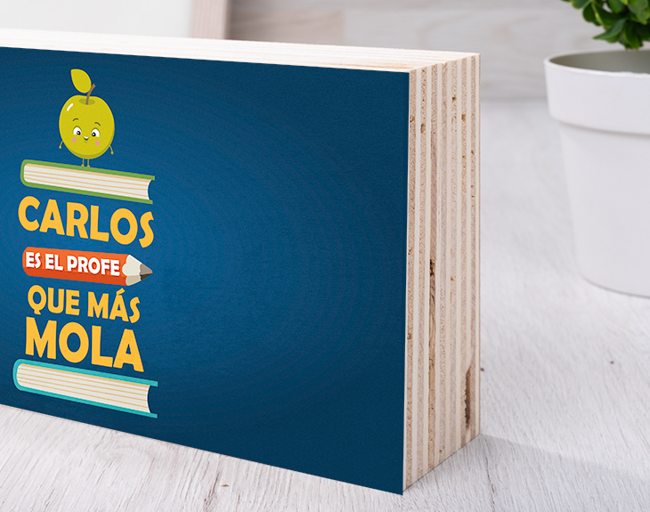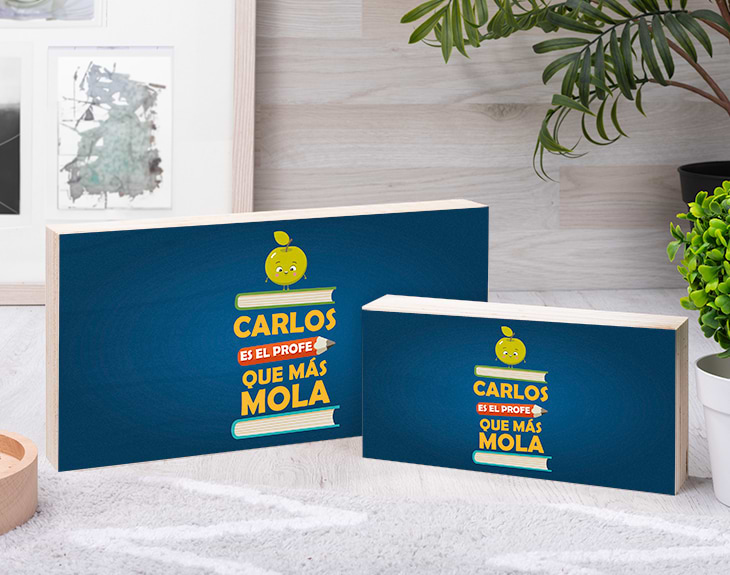 Si crees que tu profe es el que más mola de todo el colegio, este es el regalo perfecto. Esta madera personalizada es una forma muy original de agradecerle a tu profe todo lo que has aprendido en sus clases y de decirle que mola un montón. Aprovecha el final del curso para sorprenderle con este detalle tan divertido. Solo nos tendrás que decir su nombre y nosotros lo insertaremos en este diseño. Seguro que pondrá esta madera tan chula en un lugar de la clase para que todo el mundo lo vea y pueda fardar de que tiene los mejores alumnos del mundo. ¿No te parece una idea genial? Importante: Las maderas tienen vetas y estas quedan reflejadas en la imagen. Tenemos dos tamaños disponibles: - 20 x 10 x 4,2 cm. - 30 x 15 x 4,2 cm