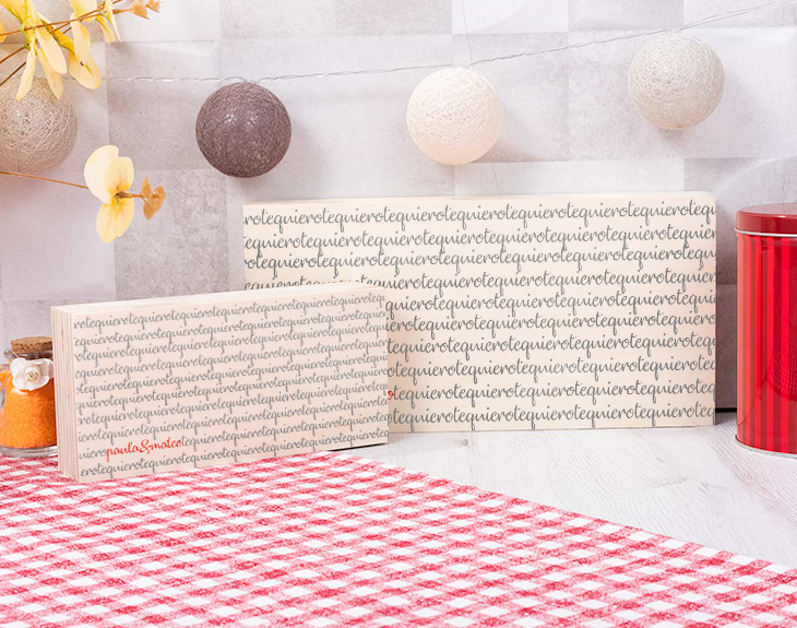 ¿Cuántas veces al día le dices "te quiero" a esa persona tan importante? Si son muchas menos de las que deberías, nuestra madera personalizada es una manera genial de demostrárselo. Si por el contrario, te pasas el día diciéndole lo muchísimo que le quieres, con esta madera conseguirás hacerlo de una forma mucho más original que no se esperará...¡Y es que no hay suficientes "te quiero" para expresar lo que sientes! Importante: Las maderas tienen vetas y estas quedan reflejadas en la imagen. Tenemos dos tamaños disponibles: - 20 x 10 x 4,2cm. - 30 x 15 x 4,2cm.