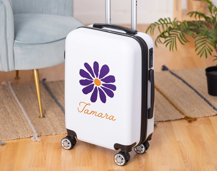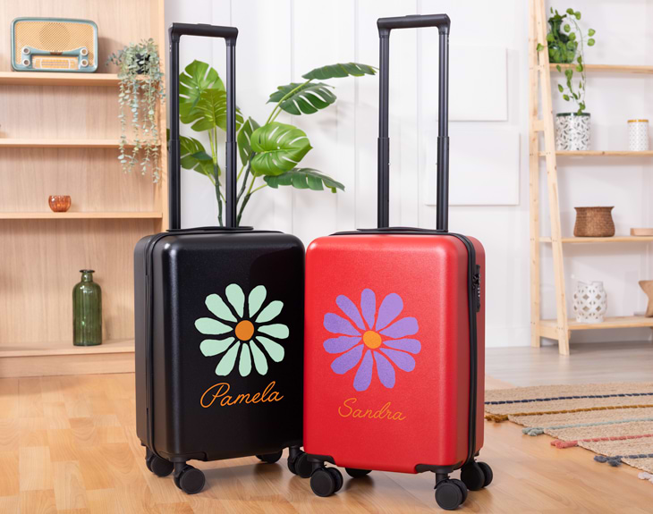 ¿Te gusta viajar y descubrir nuevos destinos? ¿Eres amante de la playa, de la montaña o simplemente disfrutas escapándote a un pueblito tranquilo?. Entonces esta maleta personalizada es para ti. Prepara tu viaje, que no hay tiempo que perder. Y si eres de los que viajan sin parar, esta maleta es resistente, práctica y súper ligera. Está pensada para que te acompañe en todas tus aventuras, con estilo y comodidad, podrás llevar todo lo que necesites y encontrar la ruta más encantadora sin complicaciones. Empieza a planear tu próxima aventura sin olvidarte de nada y con estilo. Es una maleta de cabina que cuenta con cuatro ruedas que giran 360, lo que la hace comodísima para moverte por aeropuertos, estaciones o calles empedradas. Además, incluye varios compartimentos para que aproveches al máximo el espacio y lleves todo bien organizado. Pero lo mejor es que puedes personalizarla, añade al carrito, elige tu diseño de flores favorito, escribe el nombre y listo así no habrá confusión en la cinta de equipajes, la tuya destacará desde lejos. Serás la envidia de todos los pasajeros y lo más importante, disfrutarás aún más del viaje con una maleta única y original. Hazla tuya y que empiece la aventura. Medidas: 55 x 35 x 20 cm aproximadamente. Tiene dimensiones de cabina, por lo que podrás llevarla contigo en la mayoría de los aviones (easyJet, Iberia, Vueling y muchas otras aerolíneas). Importante: la maleta cuenta con un sistema de seguridad con candado TSA. Las cremalleras se pueden bloquear en dos espacios protegidos por este código. Si no introduces el código correcto, las cremalleras no se abrirán y la maleta permanecerá segura.