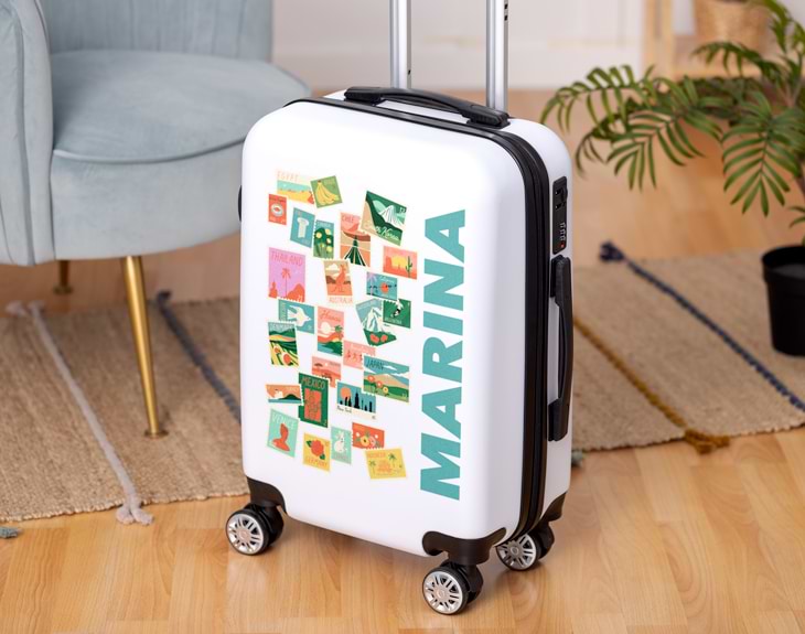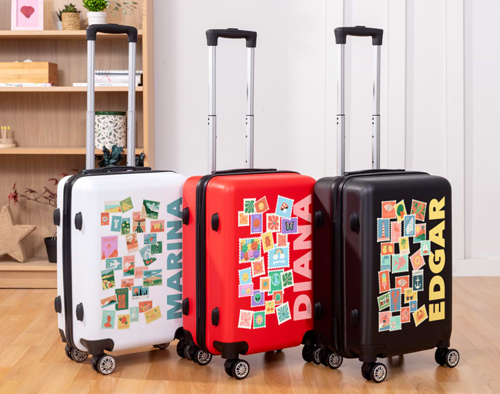 ¿A quién no le gusta viajar cada vez que tiene la oportunidad? Recorrer el mundo, visitar países nuevos, conocer gente y culturas nuevas... ¡Viajar mola mucho! Pero si hay algo que mola más, es hacerlo con tu propia maleta personalizada. Se convertirá en tu fiel compañera de aventuras y además serás el centro de todas las miradas. Esta original maleta tiene las medidas perfectas para que puedas llevarla contigo a todas partes, sin tener que facturar. Además, está disponible en tres colores (blanco, negro y rojo) y tiene dos compartimentos en los que podrás guardar todo lo que te imagines para el siguiente viaje. ¡Es lo más! Y espera porque todvía queda lo mejor... ¡Personalizar esta maleta a tu gusto! Añádela al carrito, escoge el diseño de sellos que más te guste, añade un nombre y estará lista para darlo todo en verano o cuando tú quieras. ¡El próximo destino te espera! Tiene dimensiones de mano, con lo que podrás llevarla en el avión en la mayor parte de las aerolíneas (easyJet, Iberia, Vueling y muchas otras).