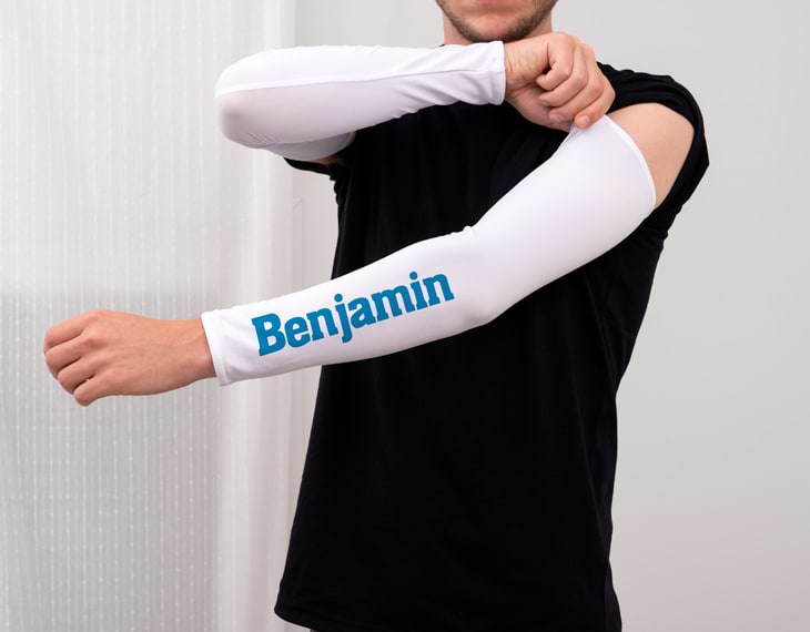 Hacer deporte es súper importante para nuestra salud. Si eres una de esas personas que quiere iniciarse en este mundillo pero siempre lo está posponiendo. Sin duda, un primer paso es tener una buena equipación deportiva que te motive a ir a entrenar. Por eso, estas mangas deportivas son lo más para comenzar con tu rutina. ¡Es algo que no puede faltar en tu armario! Entre las ventajas que tienen estas mangas está: que ayudan a prevenir lesiones, aportan flexibilidad, mejoran la técnica y mantienen la temperatura ideal de los músculos. Estas mangas son el regalo perfecto para deportistas. Además de ser súper originales y útiles, cuentan con ese toque personal porque son personalizables. Imagina la ilusión que le hará a esa persona tan deportista recibir este regalo tan guay, ¡le encantará! Para personalizar estas mangas deportivas, lo primero es añadir el producto al carrito y entrar al área de personalización. Una vez ahí, escribes el nombre o el mensaje que quieras y nosotros nos encargamos de quede perfecto. Material: combinación de nailon+spandex. Dimensiones (sin estirar): 44cm de largo; 8,5cm de ancho en la parte más cerrada; 11,5cm de ancho en la parte más abierta. Talla única.