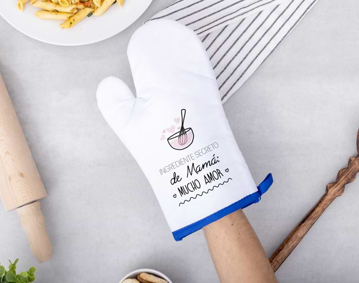 Si tienes la suerte de conocer a esa persona que ama la cocina y siempre te prepara las recetas más ricas del mundo, es hora de devolverle toda esa dedicación con un regalo único: ¡su propia manopla de cocina personalizada! Es el accesorio perfecto para que pueda coger los platos o bandejas calientes y no quemarse en el intento. ¡Y además tiene un diseño único! Si no sabías qué le podías regalar a ese amigo o familiar que es todo un chef, esta original manopla es el mejor regalo que le puedes hacer. Le dejarás sin palabras porque no es una simple manopla, es un detalle único que nadie más tendrá y que podrá utilizar siempre que quiera. Además, si es de esas personas que pone su ingrediente secreto en cada receta, su diseño le encantará. Para personalizar esta manopla, añade el producto al carrito y entra en el área de personalización. Después, completa el diseño que te dejamos con el nombre o el texto que quieras. Podrás colocarlo como tú quieras y listo. Nosotros nos encargamos del resto para que solo tengas que recibirlo. ¡Será el regalo más guay que le hayas hecho a nadie!