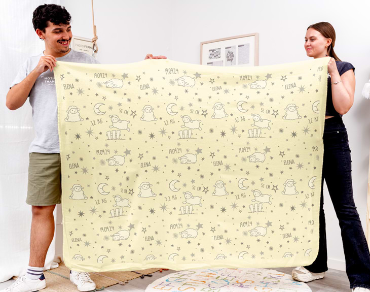 • Manta personalizada de 130cm x 180 cm. • Tarjeta recordatoria.