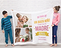 No hay persona más importante en el mundo que una madre. Porque como ellas no hay nadie, eso está claro. Las madres son únicas porque siempre están a nuestro lado, desde que nacemos en adelante, en los buenos y malos momentos y enseñándonos a ser mejores personas día a día. ¡Eso se merece un buen reconocimiento! La mejor forma de hacerlo y que lo recuerde todos los días es con esta manta personalizada. Perfecta para no pasar frío en invierno y con un diseño que el encantará ver cada vez que la use. Es la mejor manta del mundo entero. Cualquier mamá se merece que le sorprendan todos los días, pero especialmente es fechas importantes como el Día de la Madre o su cumpleaños. Por eso, esta original manta con diseño para madres es el regalo perfecto para las mamis más frioleras. Podrás elegir el tipo de manta que crear que más le va a gustar: polar, coralina o sherpa. Cualquier elección es genial. Y además, no tendrás que preocuparte por el tamaño, porque todas miden 170 x 130 centímetros. La medida perfecta para estar bien calentita siempre. Pero este regalo no sería igual sin personalizar esta manta. ¡Es muy sencillo! Elige el tipo de manta que quieras, añade el producto al carrito y comienza a diseñarla. Selecciona tus fotos favoritas y añade una breve dedicatoria en la parte inferior del diseño, colócalo todo como quieras y listo. ¡Mamá recibirá la mejor manta del mundo! Las medidas pueden varias unos centímetros, son aproximadas.