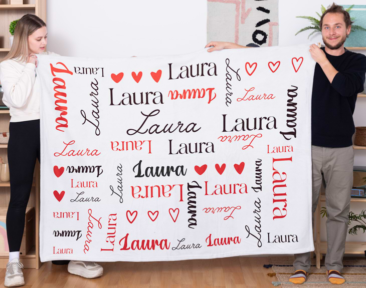 Sabemos que no hay nada más placentero que tumbarse en el sofá a ver una película, y mejor aún si estamos en invierno, acurrucados y cómodos. Ahora, imagina lo genial que sería tener tu propia manta personalizada con vuestro nombre. ¡Es posible! Con nuestro diseño "Mosaico Nombres Love", tendrás la manta más original y especial del mundo. Esta preciosa manta es el regalo perfecto para esa persona especial en cualquier ocasión. Ya sea para un cumpleaños, aniversario, San Valentín o el Día de la Madre, con este detalle seguro que triunfas. Disponemos de tres tipos de mantas extra-suaves: desde la clásica polar, hasta la más suave y calentita de coralina, y la extremadamente reforzada sherpa-borreguillo, con doble capa, ideal para las frías tardes de invierno. ¡Seguro que todos querrán una igual! Personalizar tu manta es muy fácil. No tendrás que escribir el nombre una y otra vez como ves en la imagen. Solo tendrás que hacer clic en uno de los muchos recuadros de texto, añadir un nombre o mensaje breve y, automáticamente, ese nombre se extenderá por toda la manta. ¡Como por arte de magia, habrás esparcido el nombre de la persona que más quieres por los 170x130 cm de suavidad y cariño! Sin duda, un regalo original lleno de ternura. Las medidas pueden variar algunos centímetros, ya que son aproximadas.