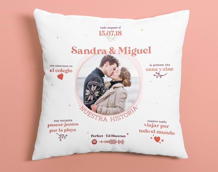 ¿Cuáles son los momentos favoritos que has vivido con tu pareja? Seguro que vuestro amor ha pasado por un montón de instantes distintos, por subidas y bajadas, desde vuestro primer cruce de miradas hasta ahora, siendo una pareja de lo más consolidada. El camino de una pareja no es nada fácil, pero vosotros habéis llegado hasta aquí. ¡No sois como cualquier pareja! Seguro que a vuestra mente vuelven todos esos momentos que habéis vivido. Viajes, cenas, días de peli y manta, comidas... todos esos instantes son mágicos, y os merecéis un detalle que siempre os los recuerde. Para ello contamos con el producto más romántico, que os hará revivir todos esos momentos una y otra vez: la manta personalizada "Nuestra historia"... ¡pero esta vez con foto! Esta manta con foto será la estrella de la casa a partir de ahora. Contamos con tres opciones distintas de mantas entre las que podéis elegir: polar, coralina y sherpa borreguillo. ¿Qué necesitáis para este detalle? Entra en el diseñador y escoge la foto que más te guste. Esta irá en el centro. Tras esto, solo tendrás que personalizarla contestando a cada una de las preguntas. ¡Quedará un regalo original para parejas que nunca olvidaréis! Las medidas pueden varias unos centímetros, son aproximadas.
