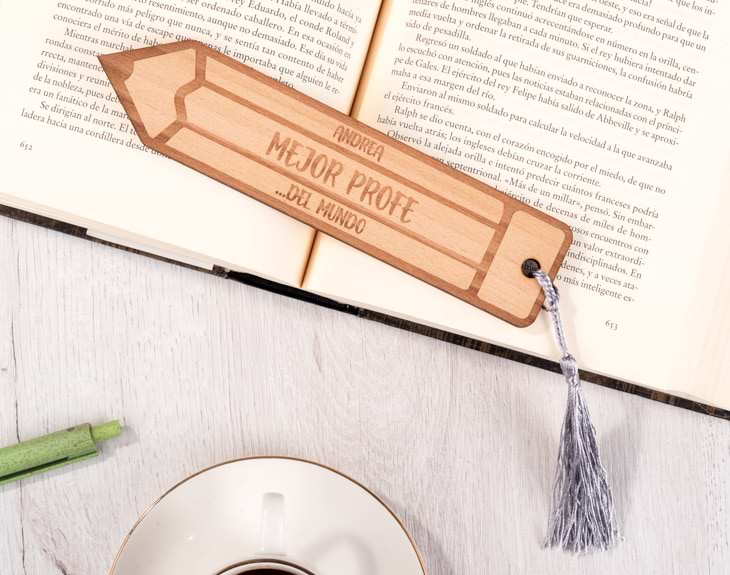 A lo largo de todo el curso, seguro que has leído y estudiado muchos libros. Con todas las asignaturas que tenemos en el colegio, es imposible no perderse de vez en cuando y no saber en qué página te habías quedado leyendo o cuál es la siguiente que tienes que estudiar. A los profes les pasa lo mismo con tanto libro, cuadernos y exámenes. Por eso, para no perderse y tener todo bien organizado necesitan este marcapáginas de madera personalizado. Se convertirá en su accesorio favorito para ese libro que esté leyendo o para saber en qué página tiene que continuar la siguiente clase. ¡Vale para todo! Si queréis sorprender a vuestro profe favorito este fin de curso, con nuestro original marcapáginas en forma de lápiz triunfaréis seguro. Es el regalo ideal para dárselo el último día de curso y dejarle sin palabras. Seguro que alguna que otra lagrimilla se le cae. Y es que este detalle es perfecto para cualquier profe, porque podéis decirle que es el mejor para que nunca se le olvide. Siempre que lea un libro se acordará de todos sus alumnos. Pero lo mejor es que podrás personalizar este marcapáginas de madera. Añade el producto al carrito y entra en el área de personalización. Ahí encontrarás el diseño que tienes que completar con el nombre de vuestro profesor o profesora y colocar a vuestro gusto. Una vez hecho esto, el marcapáginas más guay del mundo estará listo. ¡No habrá regalo más bonito que este! Medidas: 18 x 4 cm. Importante: en el extremo incluye una pequeña borla de hilo. Podrás elegir el color que más te guste: gris, negro, azul, rosa o marrón clarito.