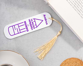 Hay niños y adultos que necesitan un buen empujón para animarse a leer un libro. Pero también hay otros para los que ese momento de descubrir nuevas historias es de los más placenteros del día. Seas del equipo que seas, tenemos el complemento de lectura ideal: este marcapáginas personalizado con llavero. ¡Así podrás marcar bien tu libro para que no se pierda! No solo vale para libros de narrativa, sino también para identificar los libros de texto del colegio o instituto. Con este marcapáginas de metacrilato con nombre, no quedará duda de que te pertenece. ¡Y de que eres una persona muy alegre! Tanto como estas abejas felices y coloridas que acompañarán tu nombre cada vez que abras el libro. Por supuesto que este marcapáginas es un fantástico regalo original para lectores. Pero su colorido diseño totalmente personalizado le alegrará la tarde hasta a los que les cueste más ponerse a leer o estudiar. ¡Sácales una sonrisa a ellos también! Medidas: - 12 cm alto - 3,5 cm ancho - 3 mm grosor Importante: en el extremo incluye una pequeña borla de hilo. Podrás elegir el color que más te guste: gris, negro, azul, rosa o marrón clarito.