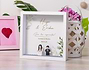 • Marco blanco de madera 21,5 x 21,5 x 4,5 cm con minifiguras Pareja Lego. • Tarjeta recordatoria.