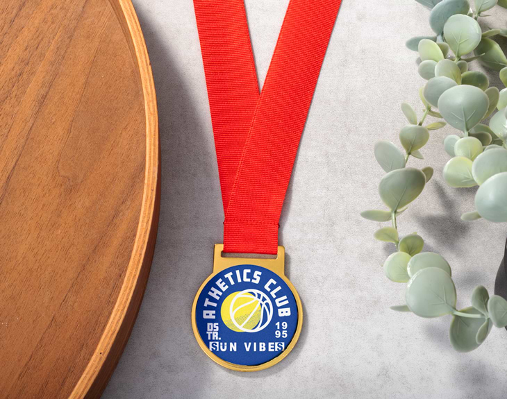 • Medalla de metal personalizada. • Cinta de poliéster color rojo. • Tarjeta Recordatoria.