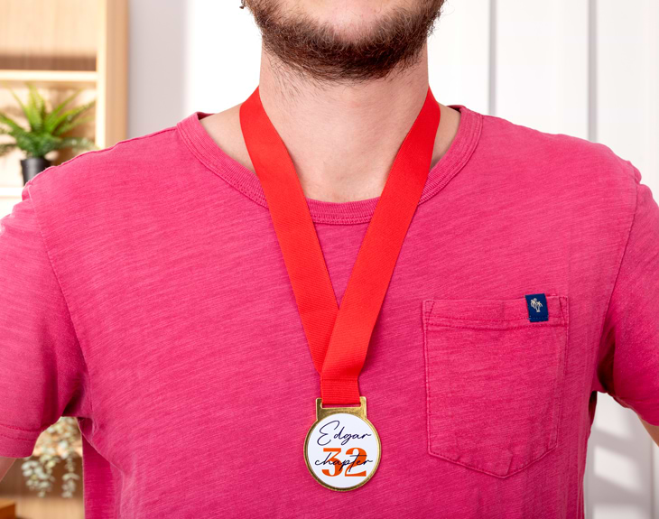 A veces nos rompemos la cabeza buscando un buen detalle, pero se acabaron los regalos aburridos y típicos que todo el mundo tiene. Regalar una medalla de metal personalizada es una forma original y muy especial de demostrar cariño, reconocimiento o aprecio. Y este modelo con diseño "Chapter" es justo lo que necesitas para sorprender y dejar un recuerdo inolvidable. Es simplemente perfecta para ocasiones especiales como cumpleaños, graduaciones o cualquier momento que merezca una celebración a lo grande. Un regalo personalizado que se sale de lo habitual y que concentra emociones de verdad. Puedes personalizar con un nombre, una fecha o una frase con significado... lo que quieras para que esa persona se quede alucinada y lo recuerde siempre. Además, hacer tu pedido es facilísimo: solo añade la medalla al carrito y rellena los campos de texto en el área de diseño con lo que quieras incluir. Recuerda que el texto del centro es el único que podrás cambiar de color; para hacerlo, simplemente haz clic en el texto y utiliza la barra de color que aparece abajo. Y listo recibirás la medalla original más especial de todas, hecha a medida para emocionar. Medidas: 4,5 cm de diámetro. Material: metal.